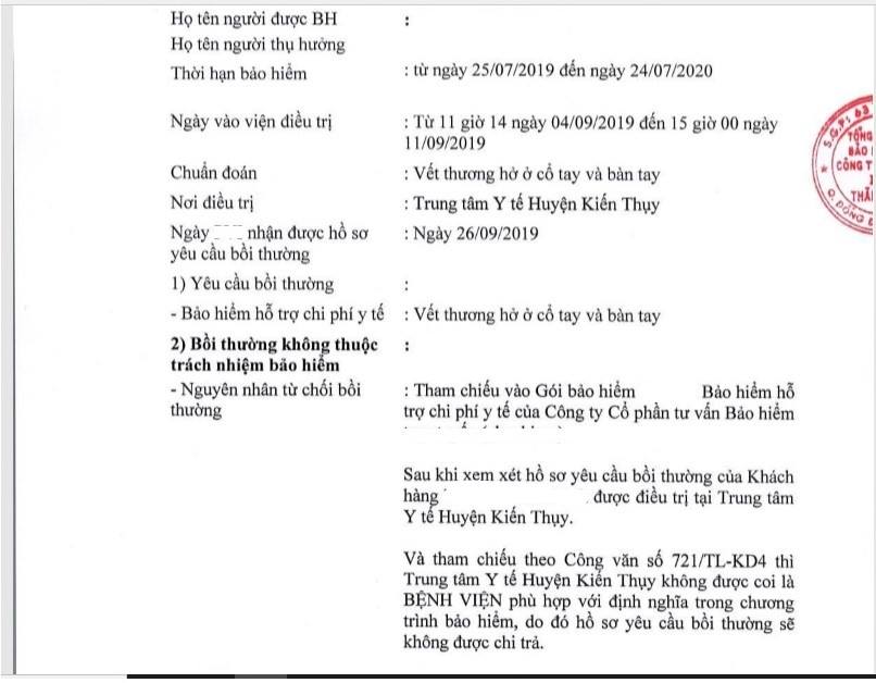 Có hay không thực hư tham gia bảo hiểm chăm sóc sức khỏe không được bồi thường vì lý do điều trị tại trung tâm y tế huyện?