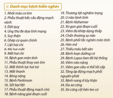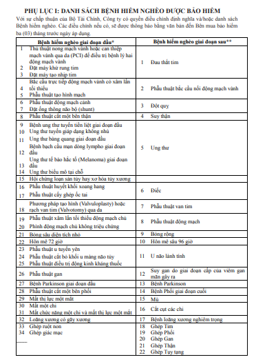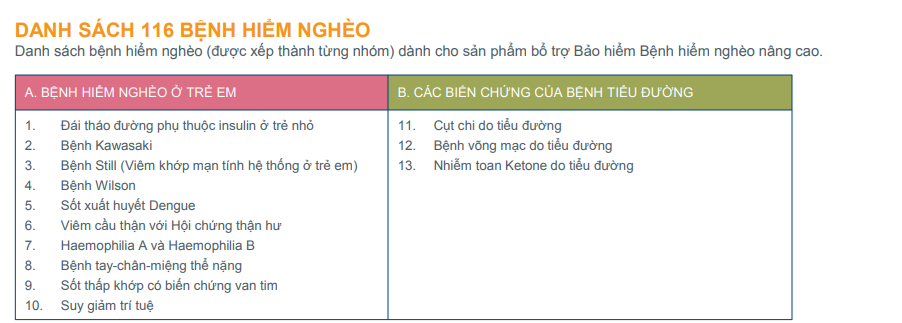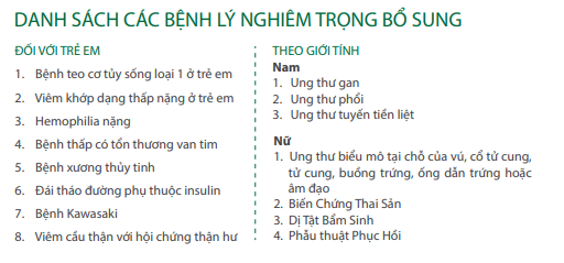 Ngoài ra, một số doanh nghiệp bảo hiểm có 02 danh sách bệnh khác nhau phụ thuộc vào sản phẩm bảo hiểm khách hàng tham gia.