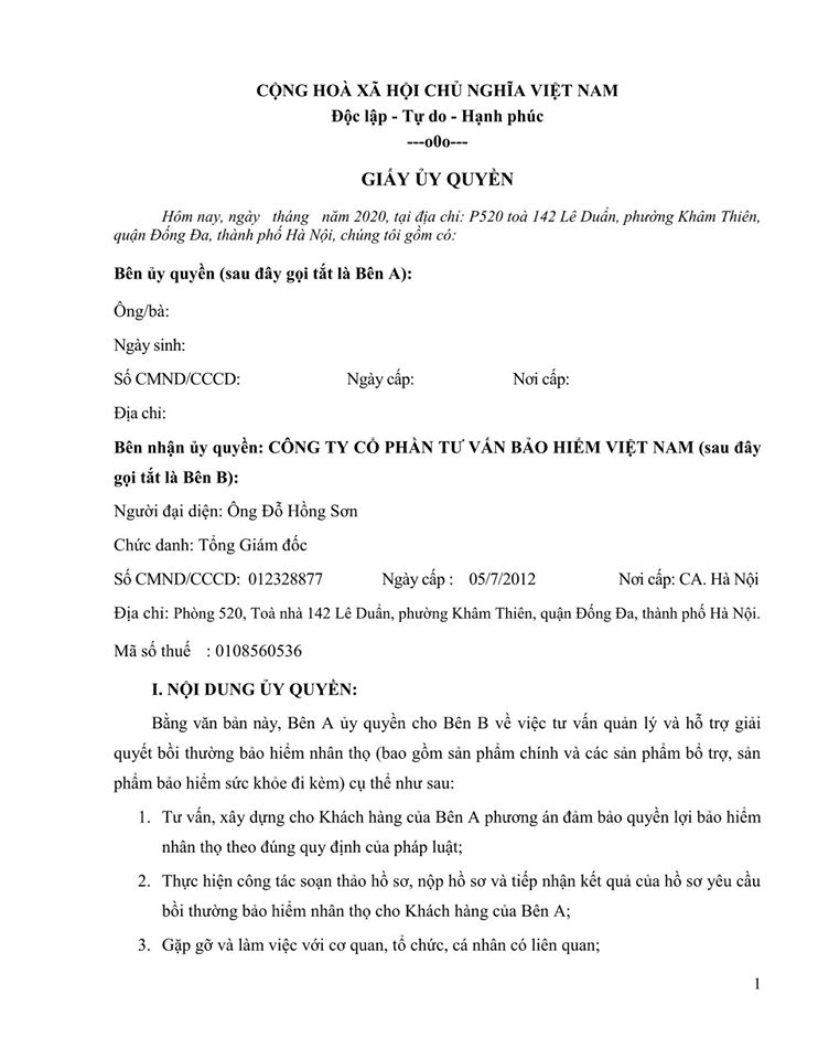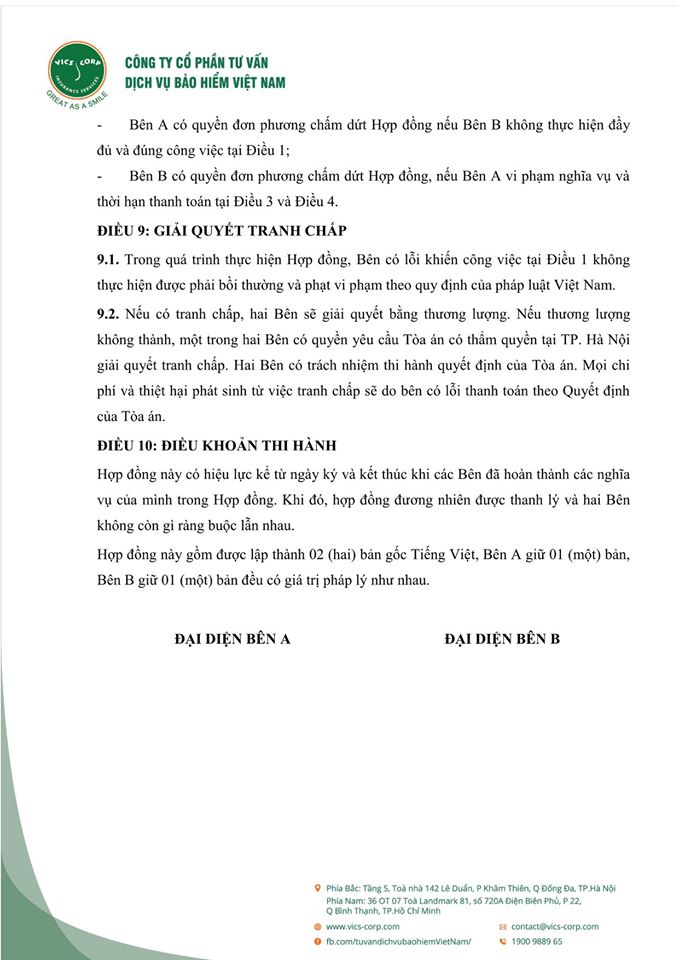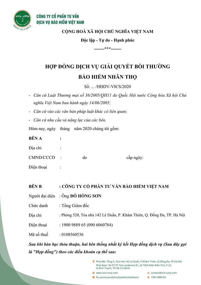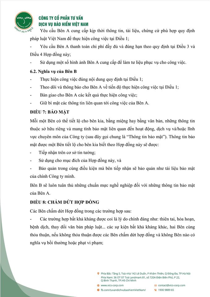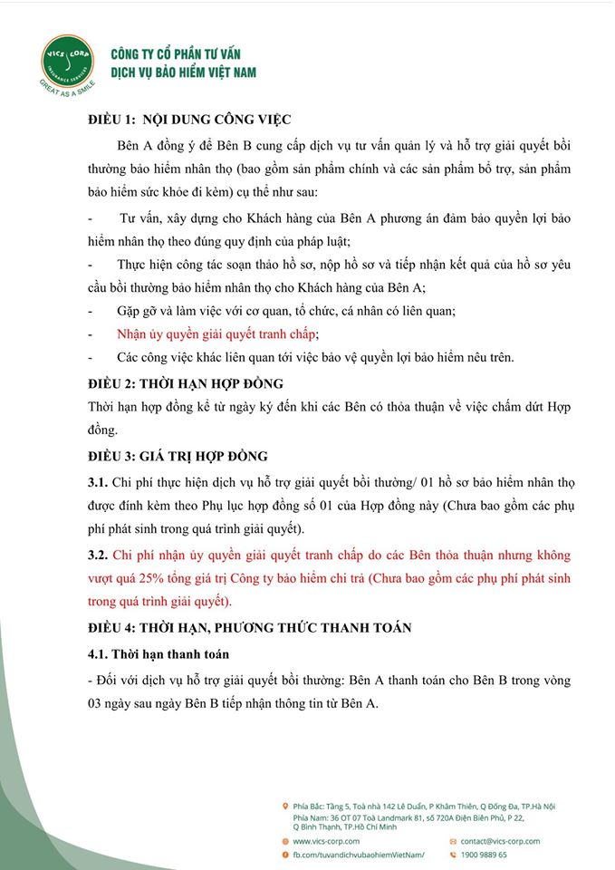 Dưới đây là bộ Hợp đồng và Giấy ủy quyền mẫu giữa các đại lý (tư vấn viên) bảo hiểm nhân thọ và Vics-corp. Rất mong được hợp tác với các đại lý (tư vấn viên) trong thời gian tới!