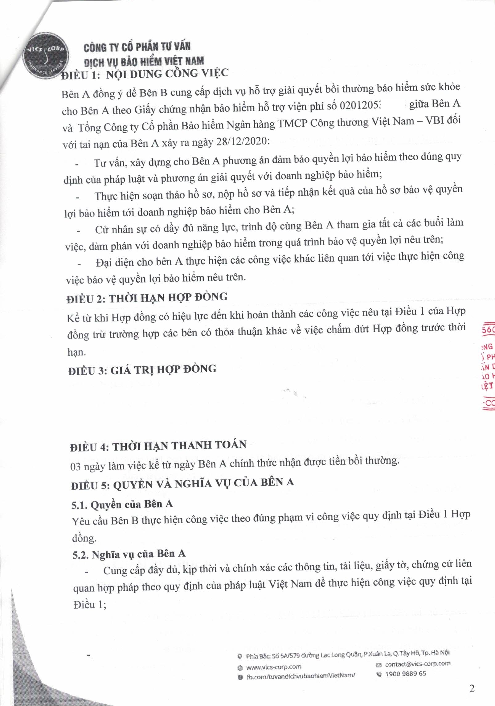 Hợp đồng dịch vụ hỗ trợ giải quyết bồi thường bảo hiểm sức khỏe