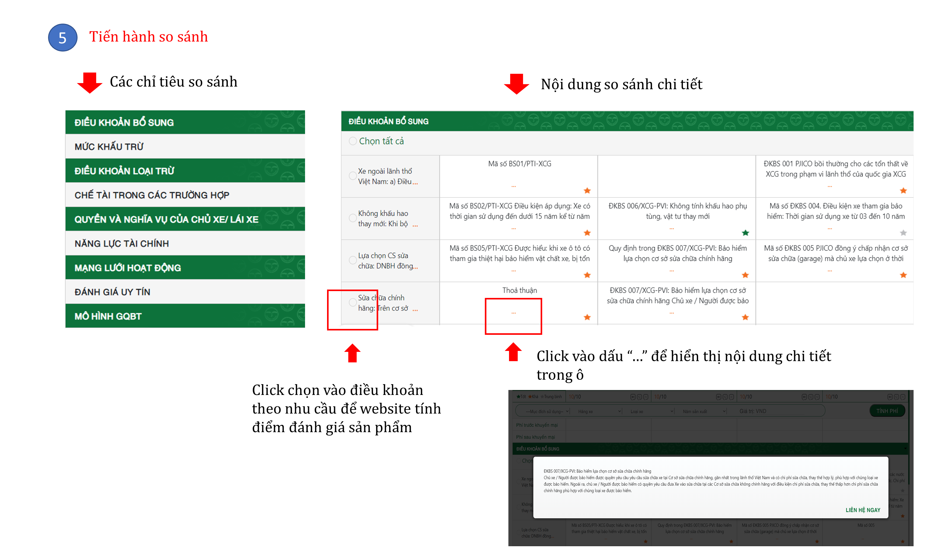 Trang so sánh sản phẩm bảo hiểm vật chất xe ô tô-vbaohiem