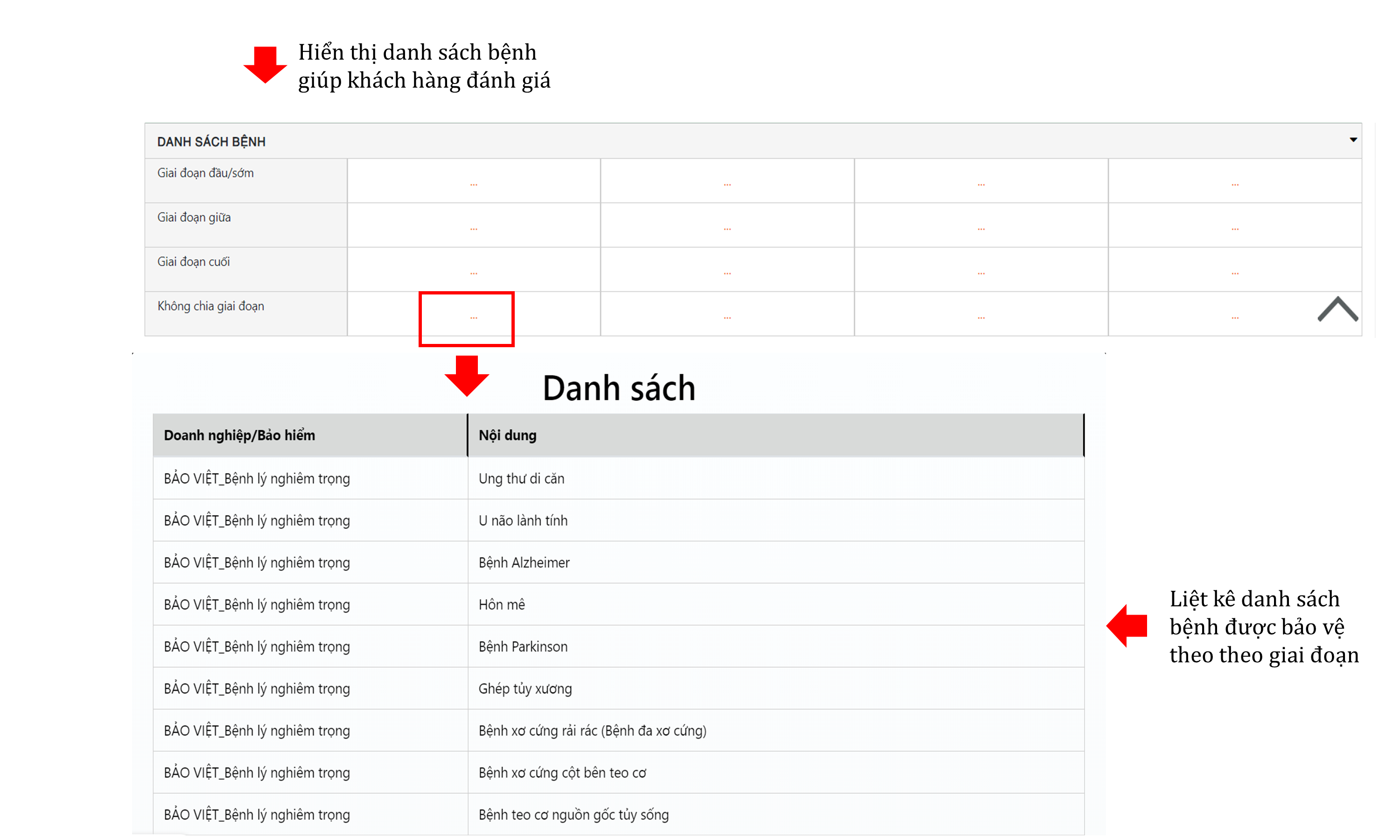 Ngoài ra trang so sánh sản phẩm bảo hiểm nhân thọ còn tổng hợp danh sách các bệnh lý nghiêm trọng/ bệnh hiểm nghèo được bảo hiểm của mỗi sản phẩm khác nhau, giúp khách hàng có thể cân nhắc, lựa chọn sản phẩm phù hợp.