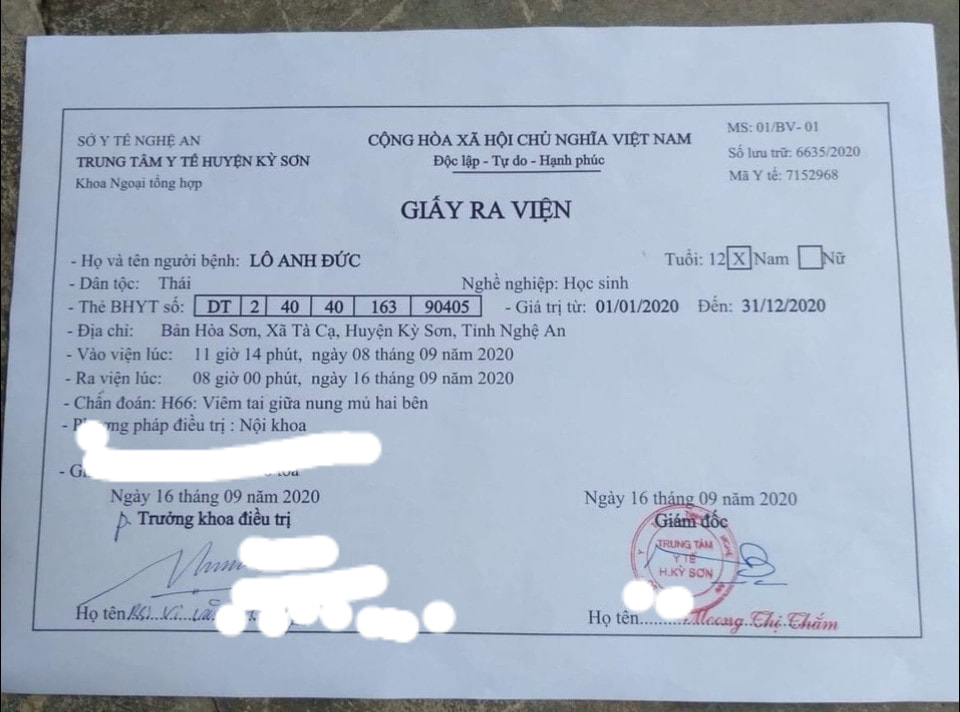 - Bị viêm tai giữa mưng mủ nằm điều trị tại trung tâm y tế huyện 9 ngày.