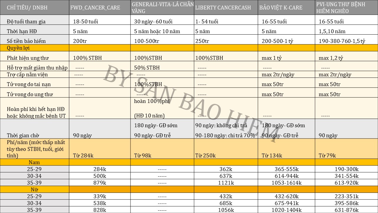 So sánh một số sản phẩm bảo hiểm ung thư trên thị trường